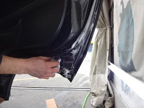 ドア内部のヒンジ部、給油口など普段見えない部分も徹底的に洗浄していきます。